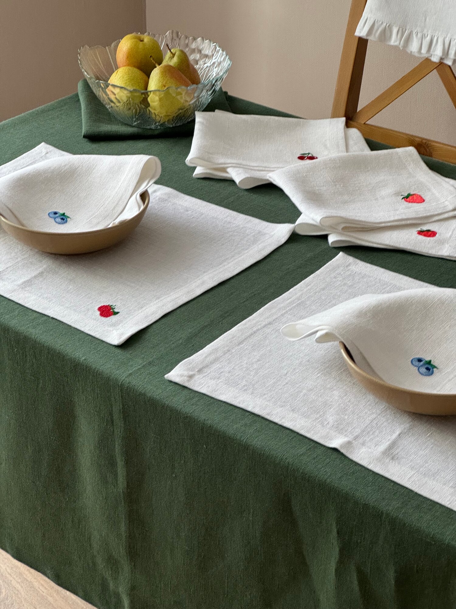 Сервировочная салфетка LenJuLen "Круассан", лен, вышивка, белая, 35 см x 45 см