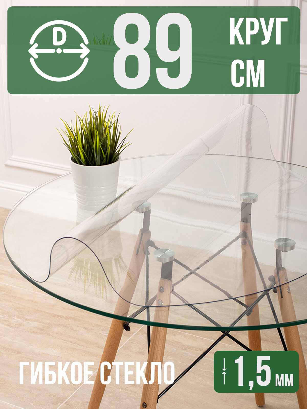 Купить Круглая силиконовая прозрачная скатерть ПВХ, гибкое мягкое стекло 1,5мм диаметр 89см на стол
