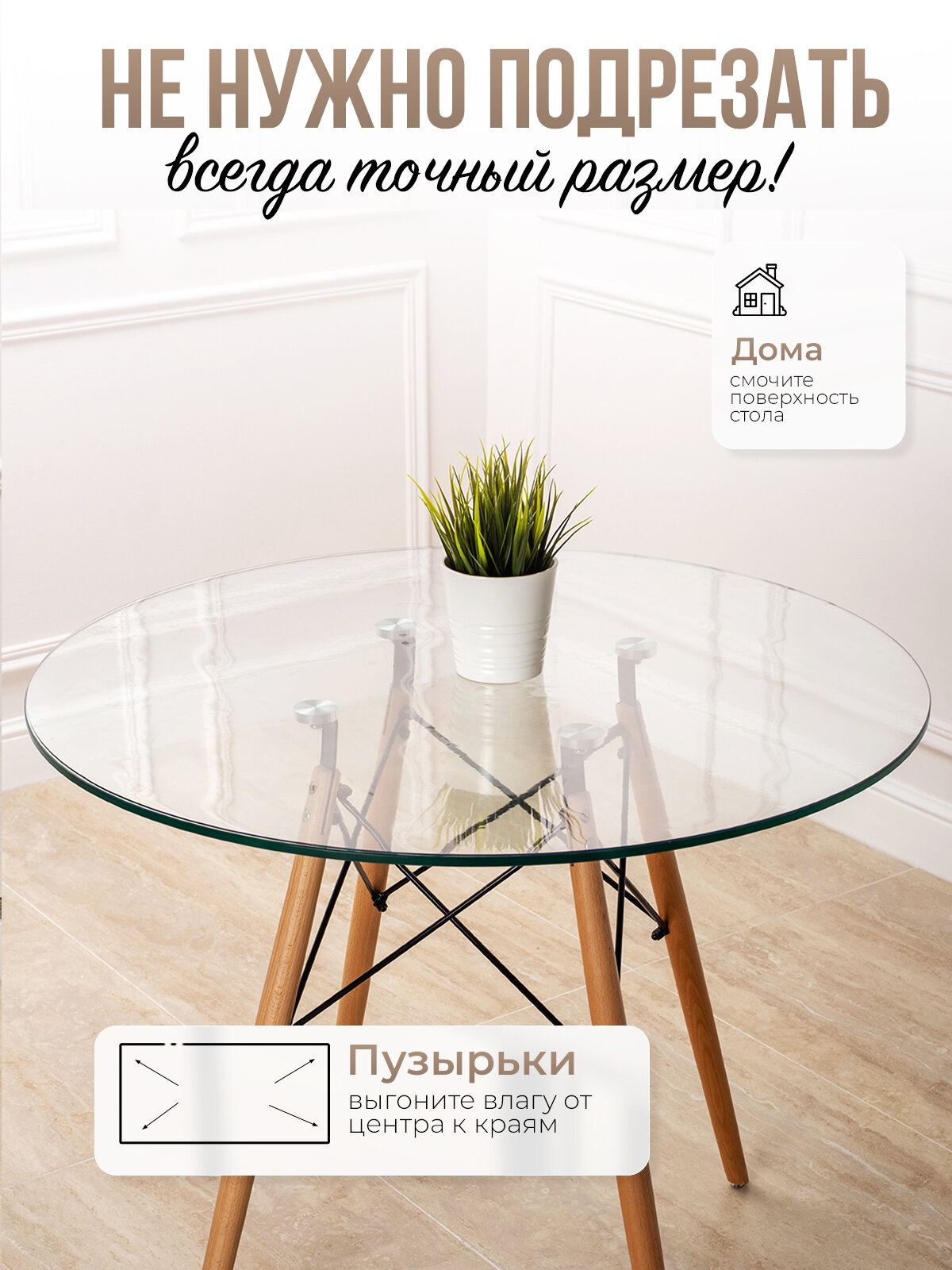 СохранитьКруглая силиконовая прозрачная скатерть ПВХ, гибкое мягкое стекло 0,6мм диаметр 92см на стол интересное: