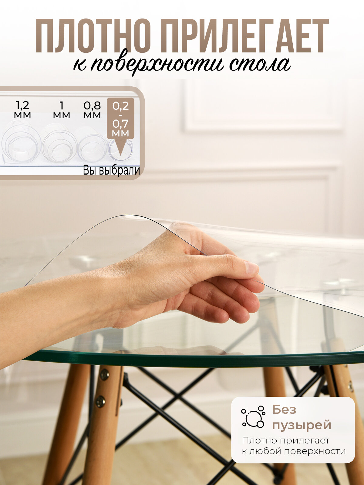 Круглая силиконовая прозрачная скатерть ПВХ, гибкое мягкое стекло 0,8мм диаметр 70см на стол