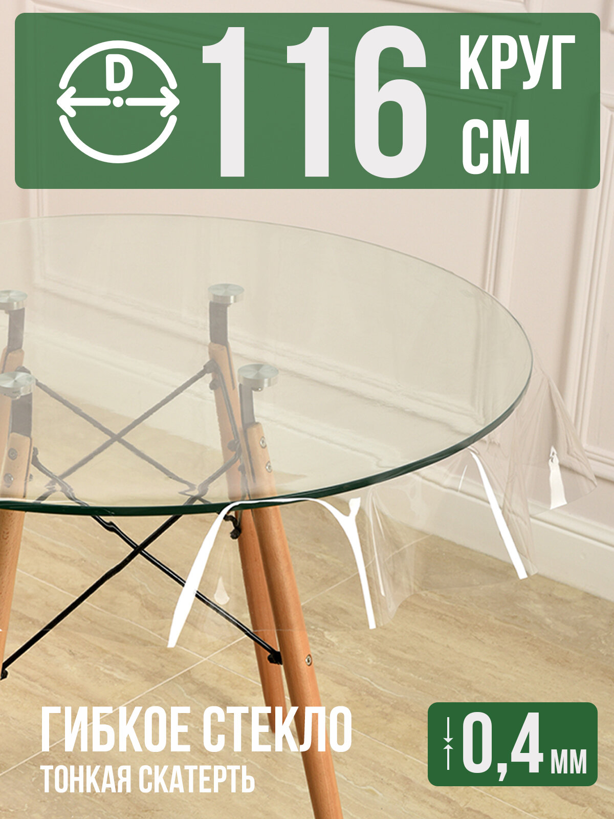 СохранитьКруглая силиконовая прозрачная скатерть ПВХ, гибкое мягкое стекло 0,4мм диаметр 116см на стол интересное: