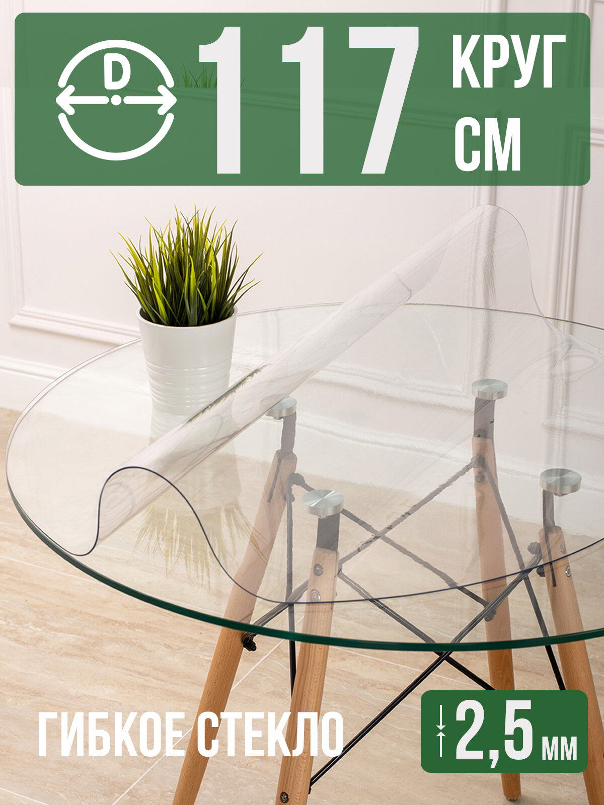 СохранитьКруглая силиконовая прозрачная скатерть ПВХ, гибкое мягкое стекло 2,5мм диаметр 117см на стол интересное: