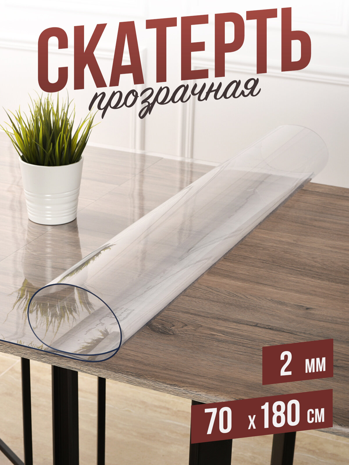 Купить Силиконовая прозрачная скатерть ПВХ, гибкое мягкое стекло 2мм 70x180см клеенка на стол