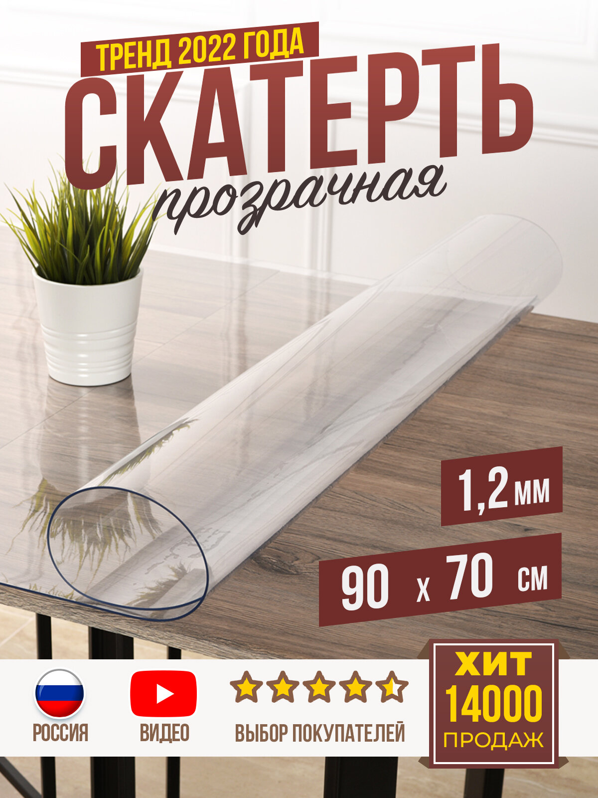 Купить Силиконовая прозрачная скатерть ПВХ, гибкое мягкое стекло 1,2мм 70x90см клеенка на стол