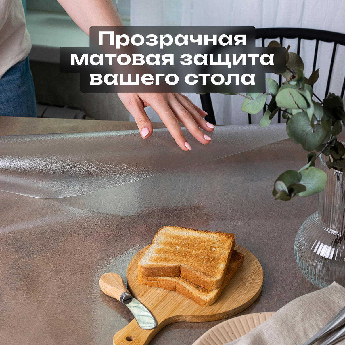 Скатерть на стол прозрачная жидкое гибкое стекло ПВХ 95 x 95