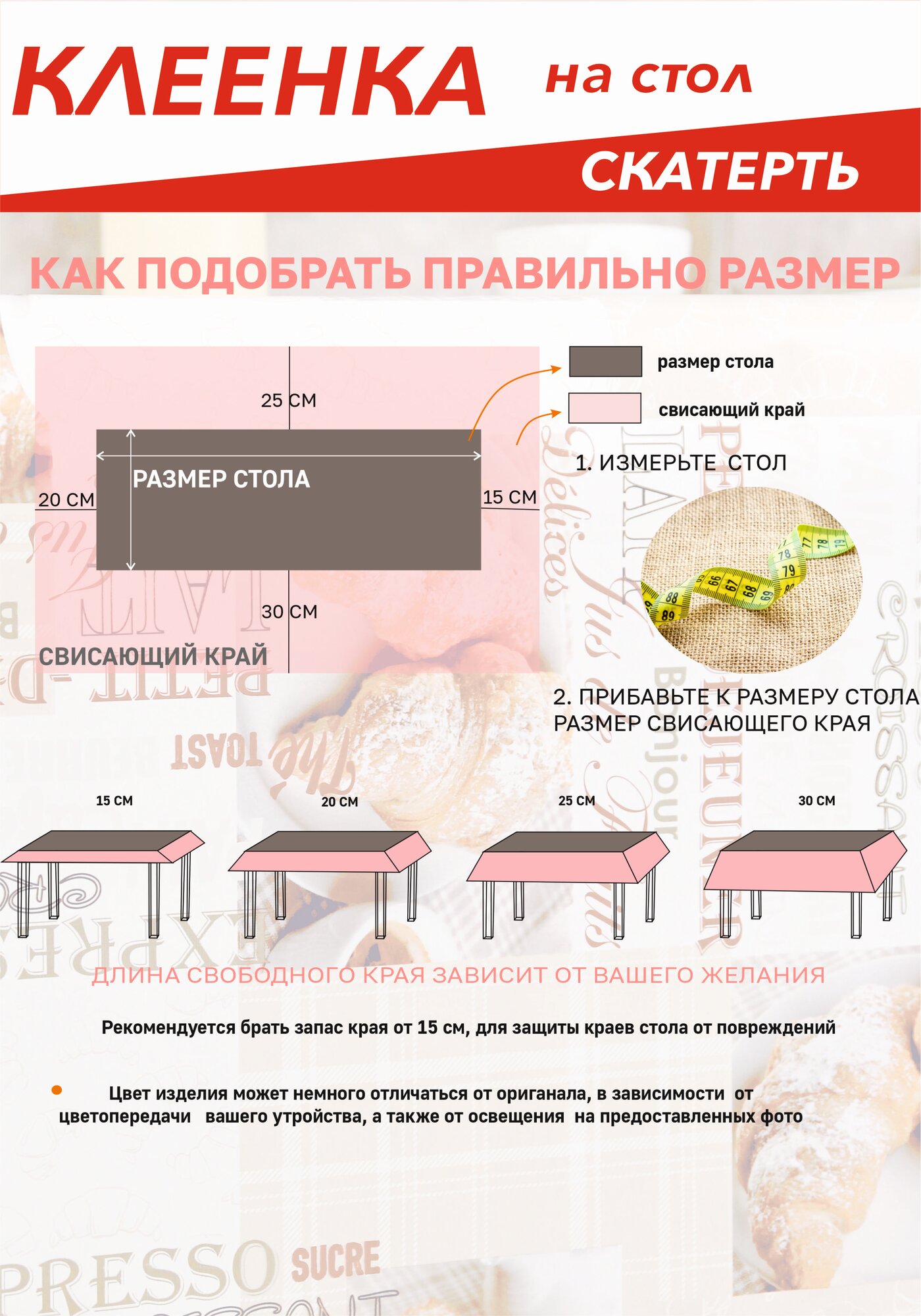 Ниже Вы можете прочитать отзывы на Скатерть, Клеенка на стол dekorama 90x140см Сroissant DEK-67A, ознакомится с подробными характеристиками, посмотреть интересные обзоры и фотографии на Скатерть, Клеенка на стол dekorama 90x140см Сroissant DEK-67A.