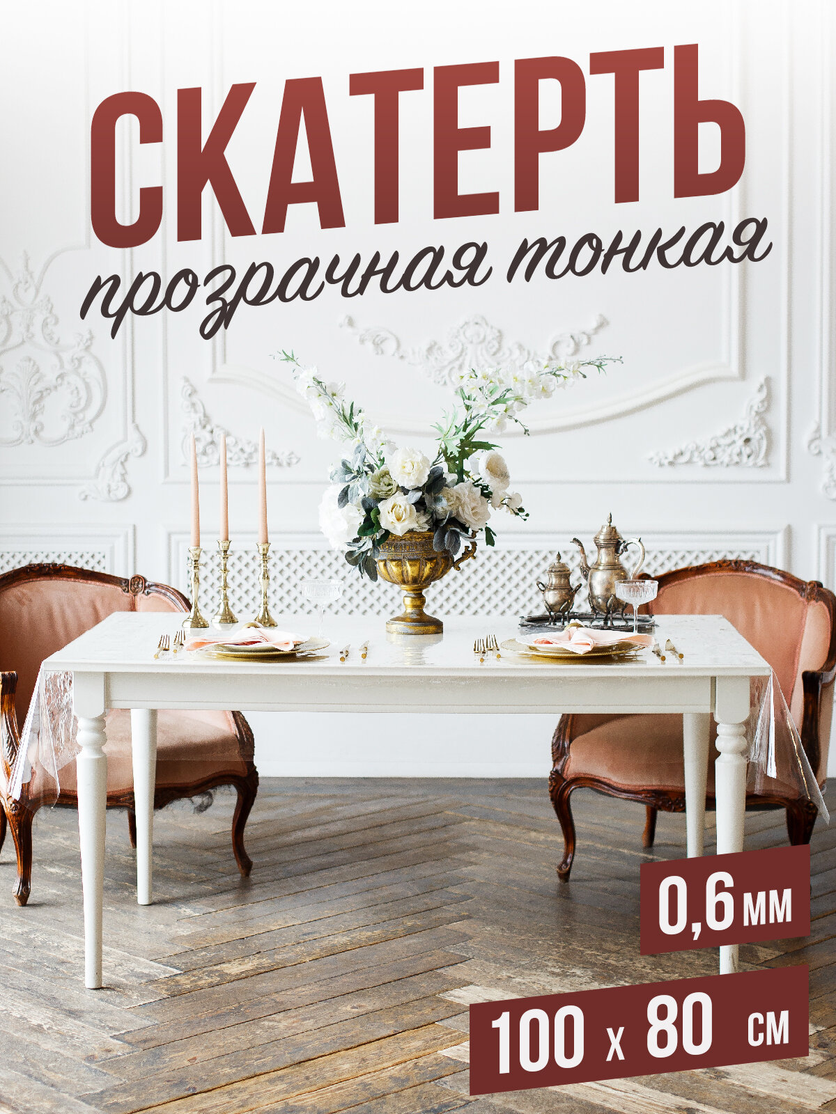 Силиконовая прозрачная скатерть ПВХ, гибкое мягкое стекло 0,6мм 80x140см клеенка на стол