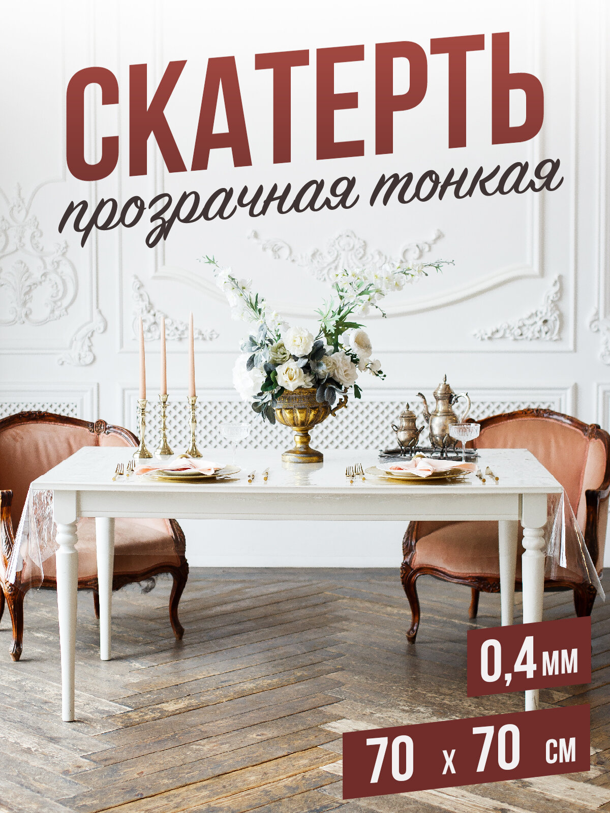Купить Силиконовая прозрачная скатерть ПВХ, гибкое мягкое стекло 0,4мм 70x70см клеенка на стол