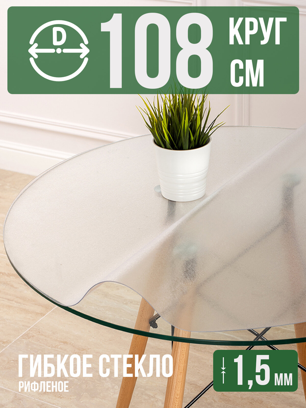 Купить Круглая силиконовая рифленая скатерть гибкое мягкое стекло 1,5мм диаметр 108см