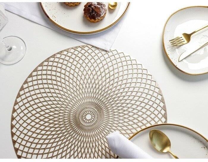 Купить Салфетки сервировочные на стол Доляна «Вира», 4 шт, d=38 см, золотые
