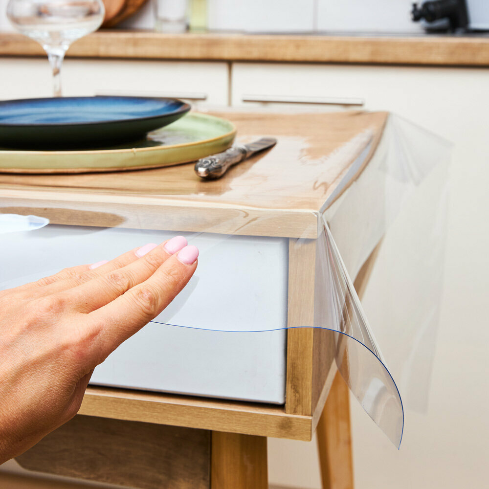 Гибкое стекло для стола на кухню EasyLite 140х160 см. Толстое 2 мм. Прозрачная скатерть