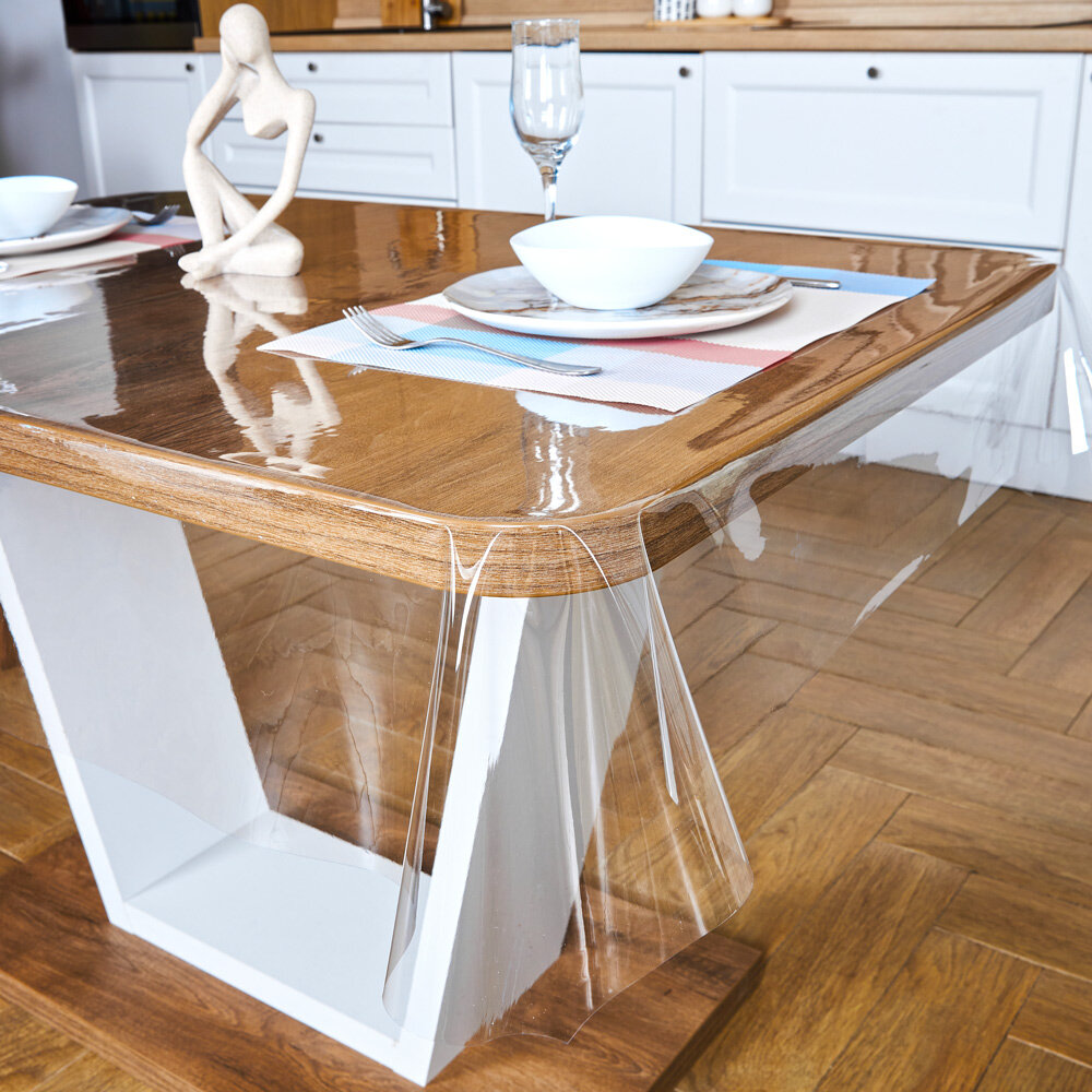 Гибкое стекло для стола на кухню EasyLite 140х160 см. Толстое 2 мм. Прозрачная скатерть