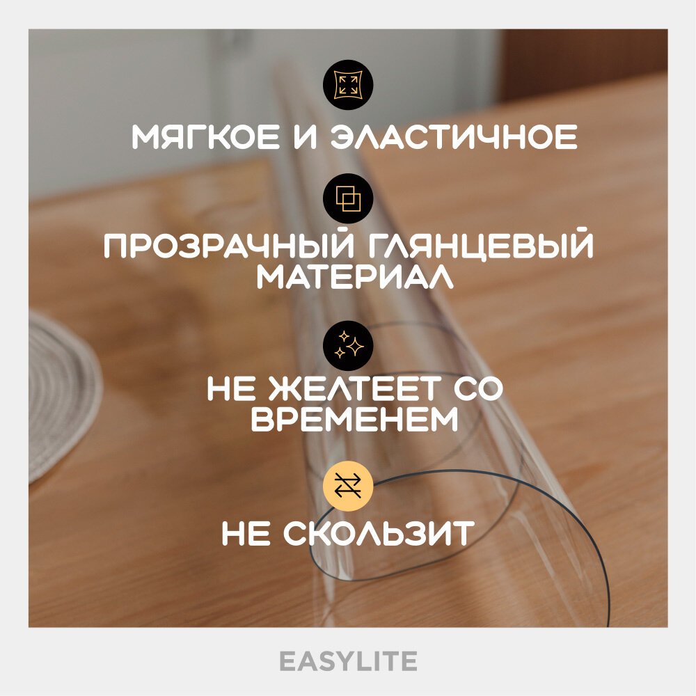 Гибкое стекло для стола на кухню EasyLite 100х90 см. Толстое 1,5 мм. Прозрачная скатерть