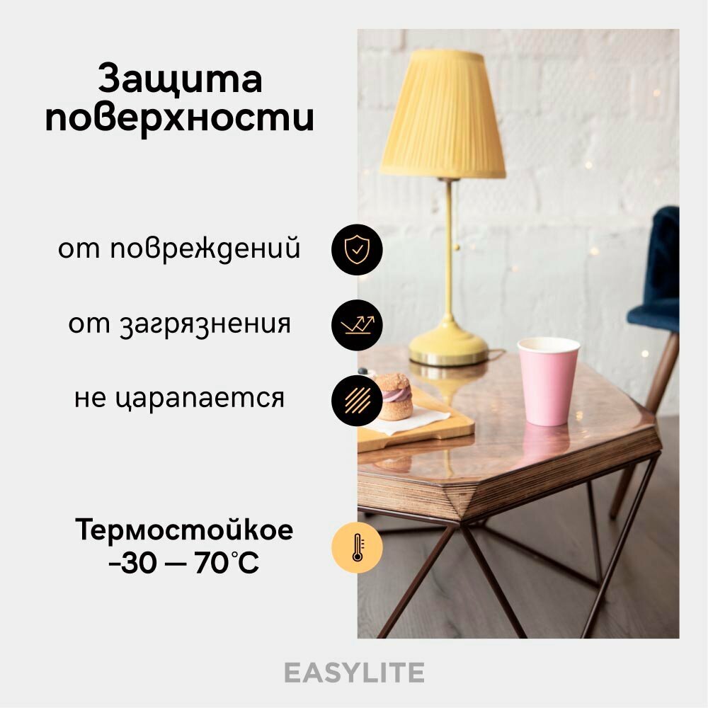 Гибкое стекло для стола на кухню EasyLite 70х40 см. Толстое 1,5 мм. Прозрачная скатерть