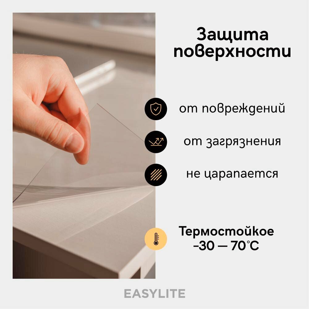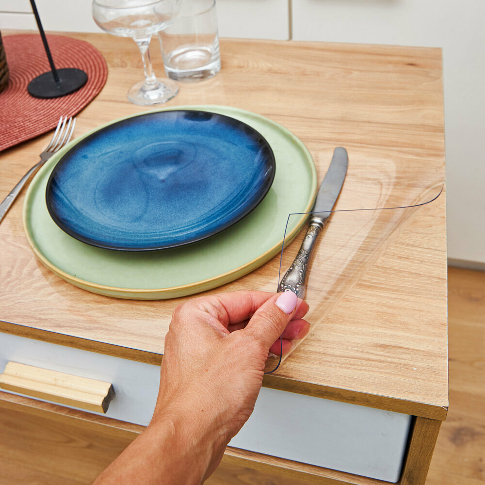 Гибкое стекло для стола на кухню EasyLite 70х40 см. Толстое 1,5 мм. Прозрачная скатерть