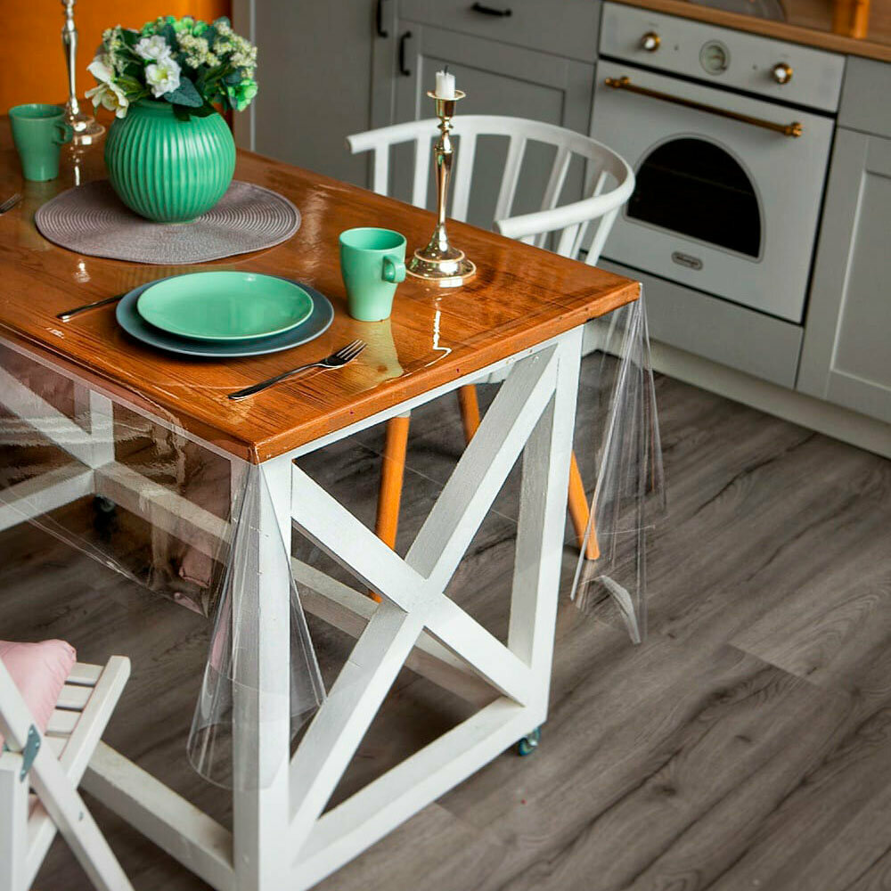 Гибкое стекло для стола на кухню EasyLite 140х160 см. Толстое 2 мм. Прозрачная скатерть