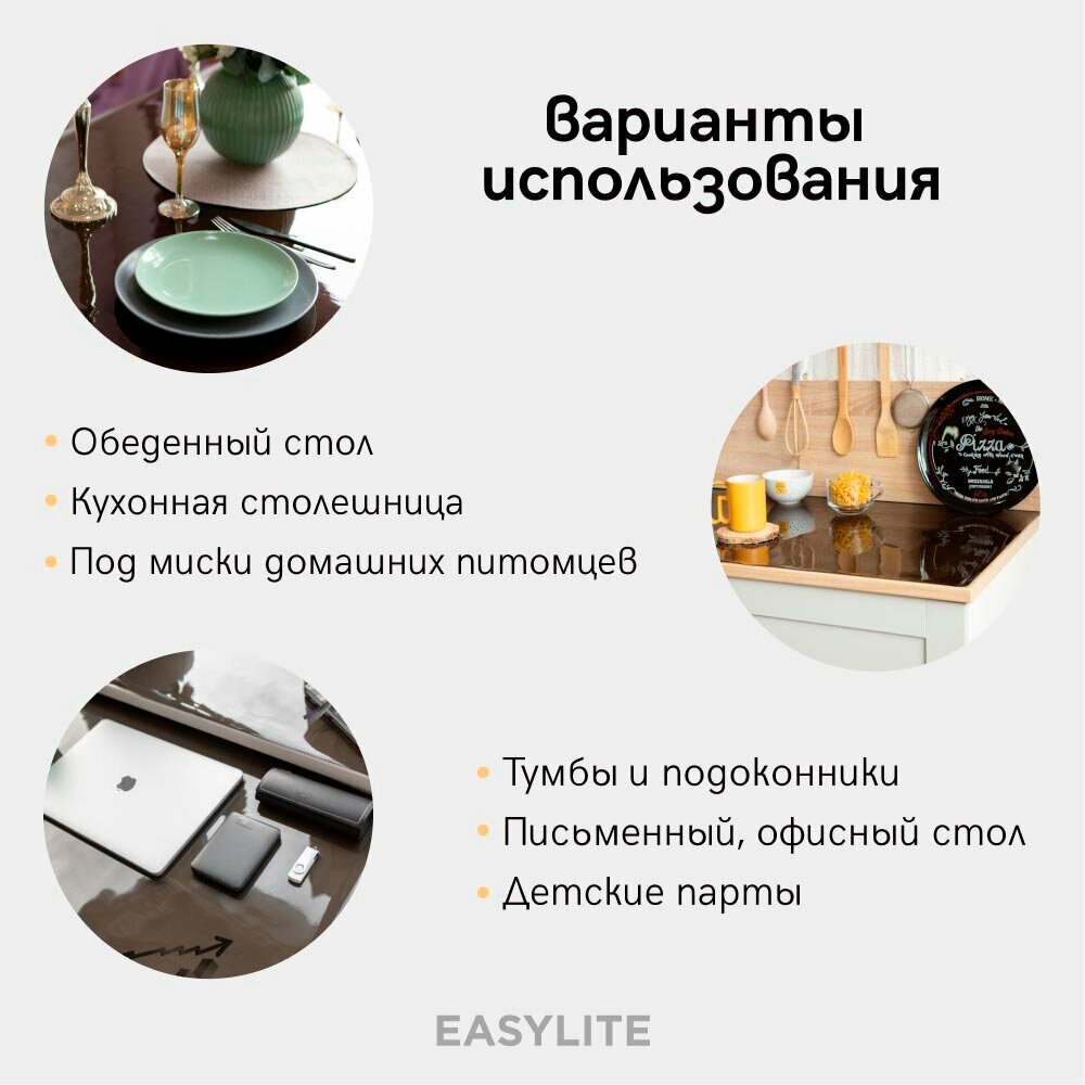 Гибкое стекло для стола на кухню EasyLite 70х40 см. Толстое 1,5 мм. Прозрачная скатерть