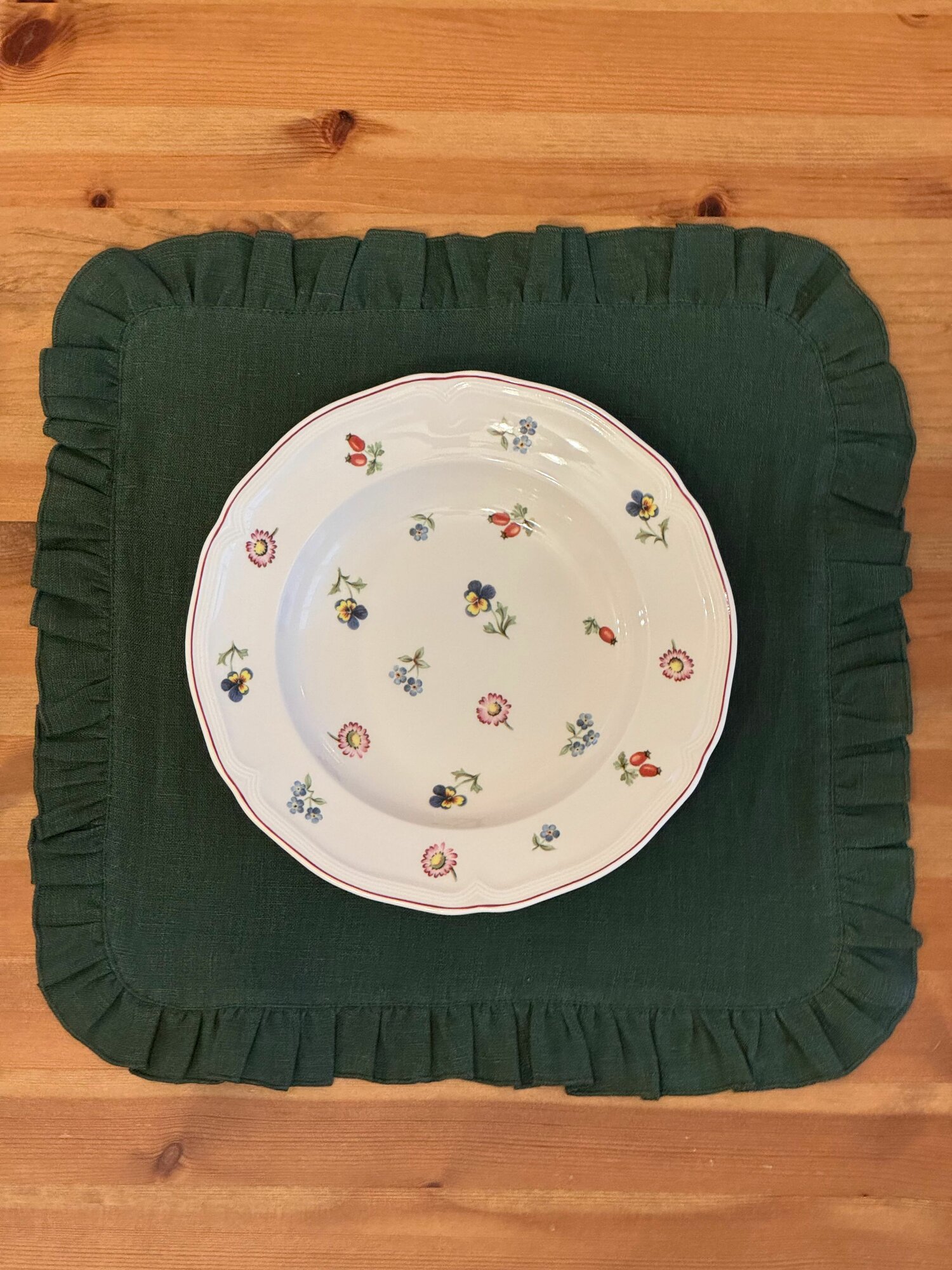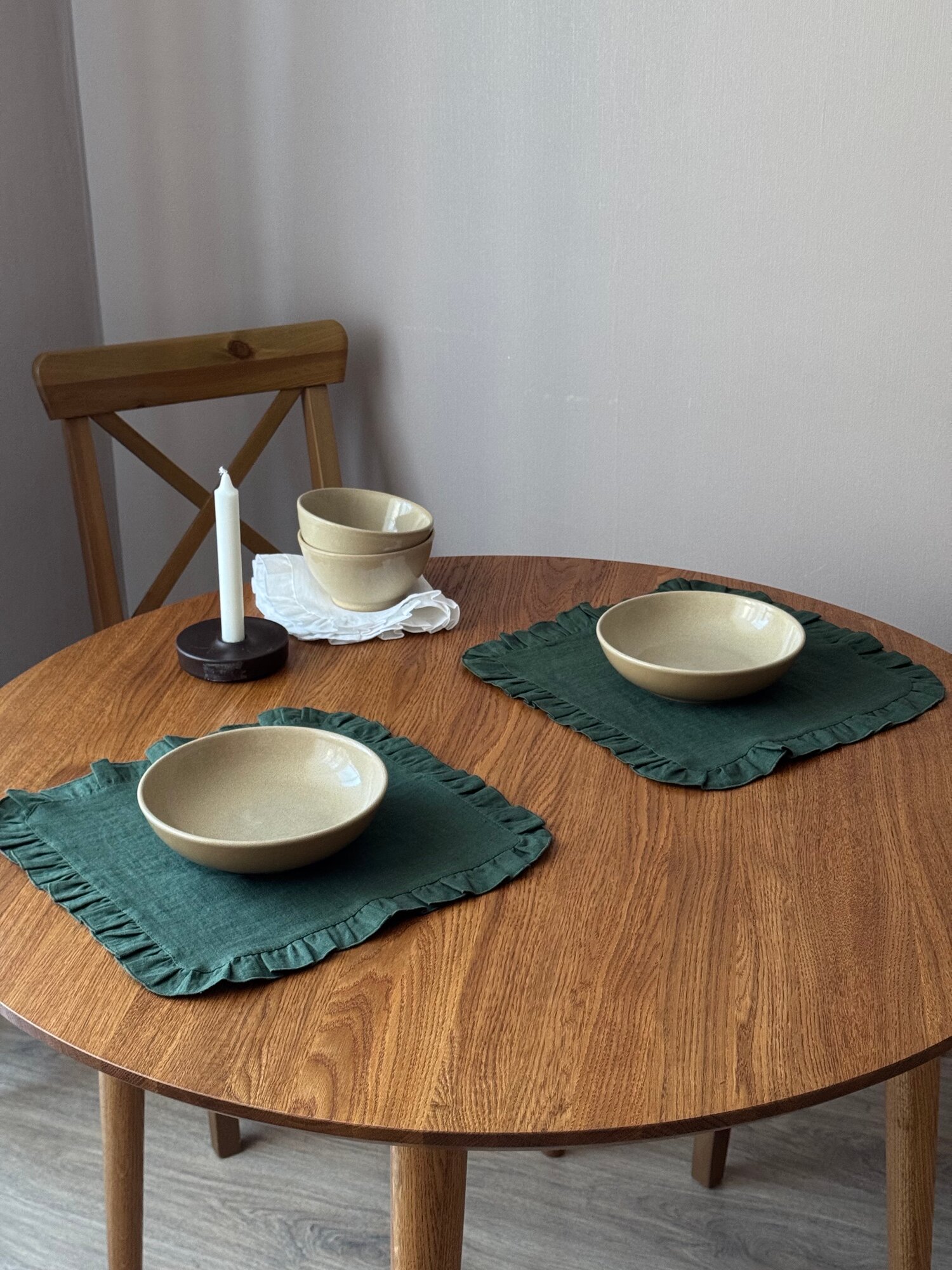Купить Сервировочная салфетка "Льняная" LenJuLen, с рюшами, квадратная, зеленый, 35см х 35 см