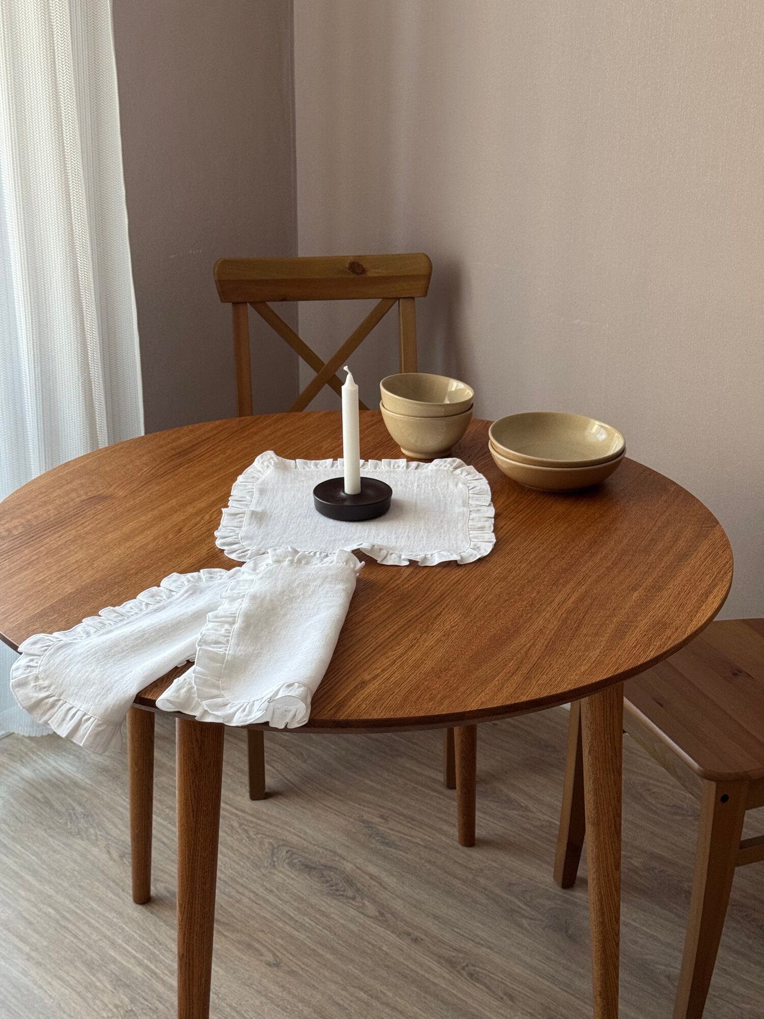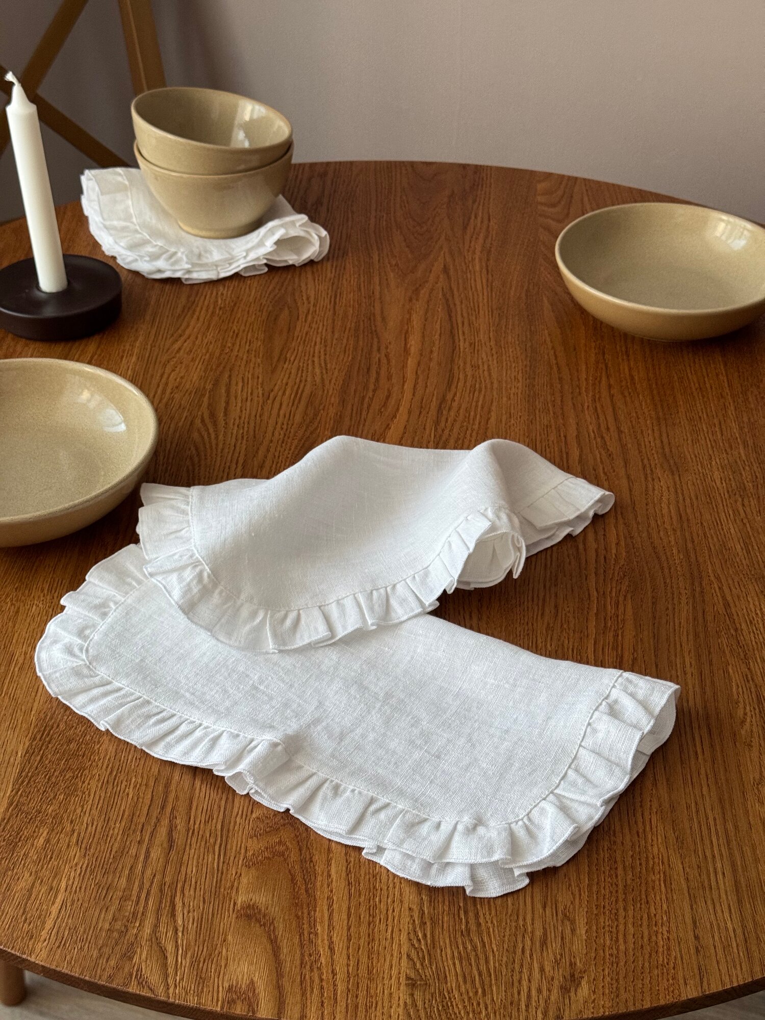 Сервировочная салфетка LenJuLen "Белая", лен, с рюшами, 30 см x 40 см