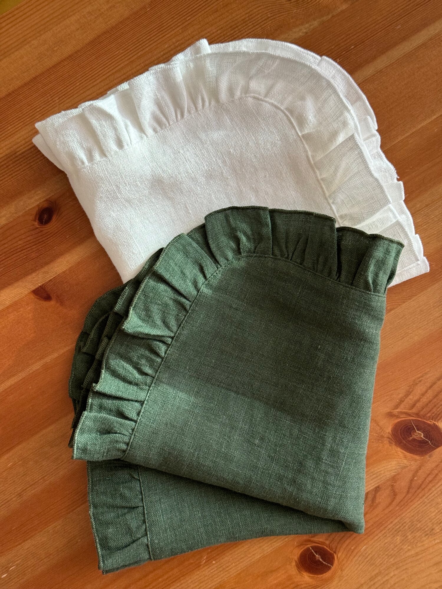 Сервировочная салфетка "Льняная" LenJuLen, с рюшами, квадратная, зеленый, 35см х 35 см