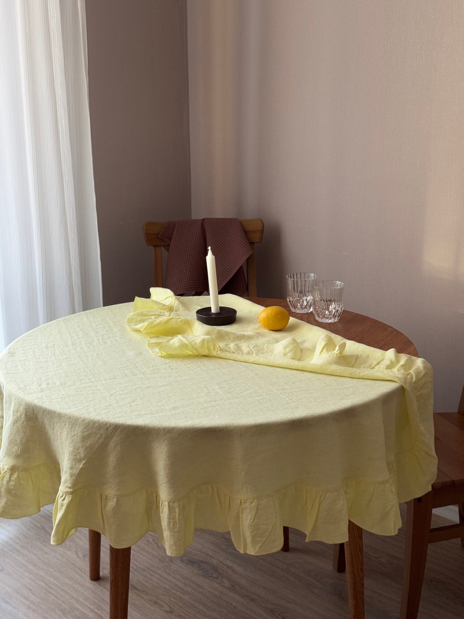 Сервировочная салфетка LenJuLen "Лимон", льняная, 35х35 см, с рюшами