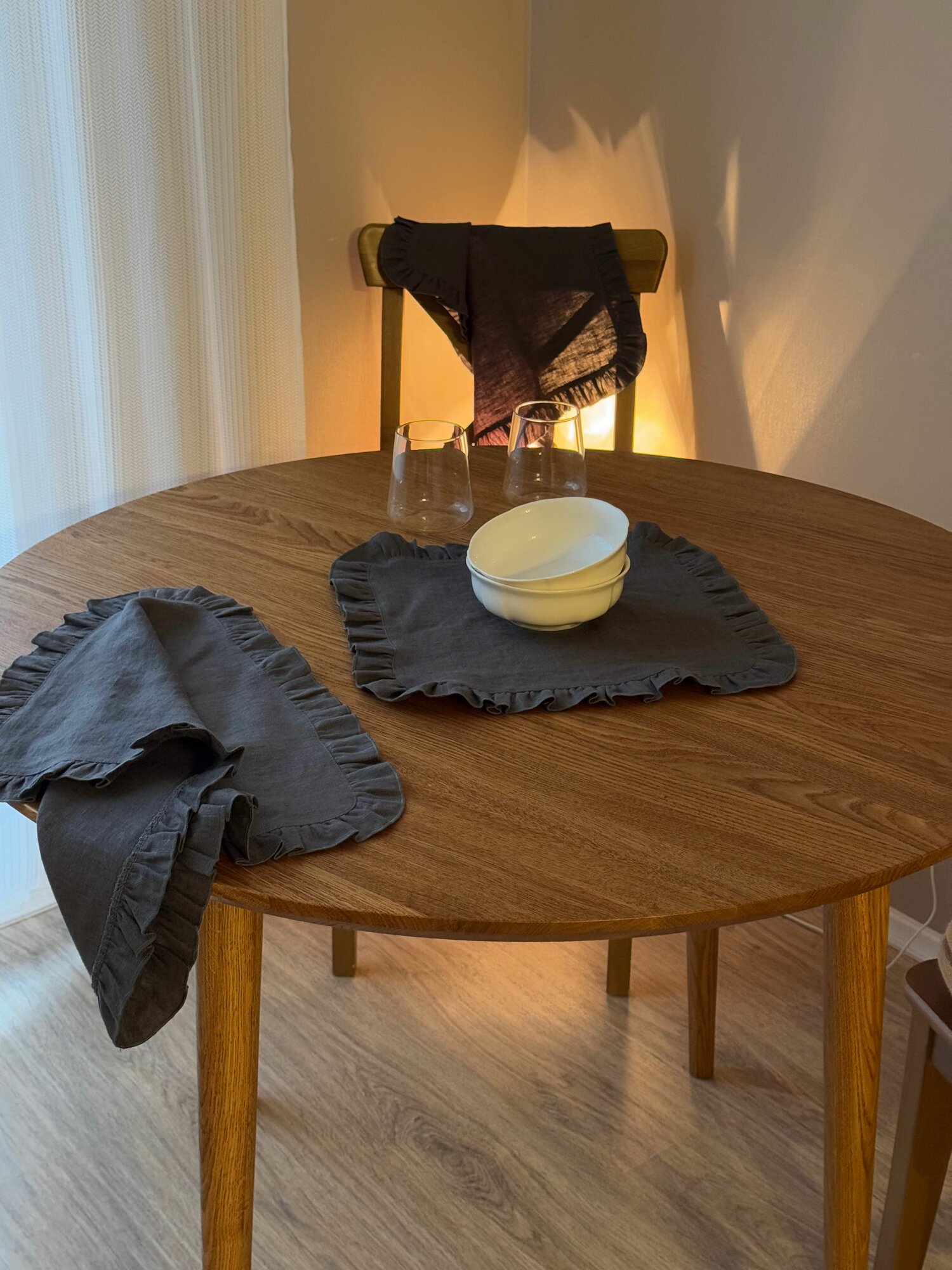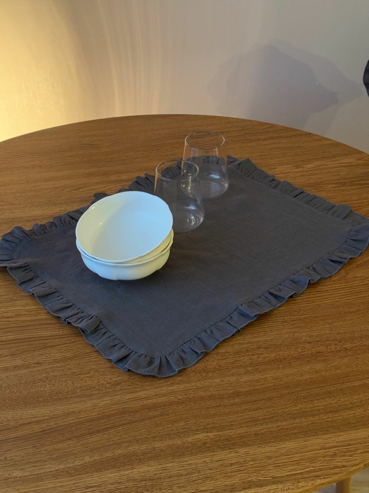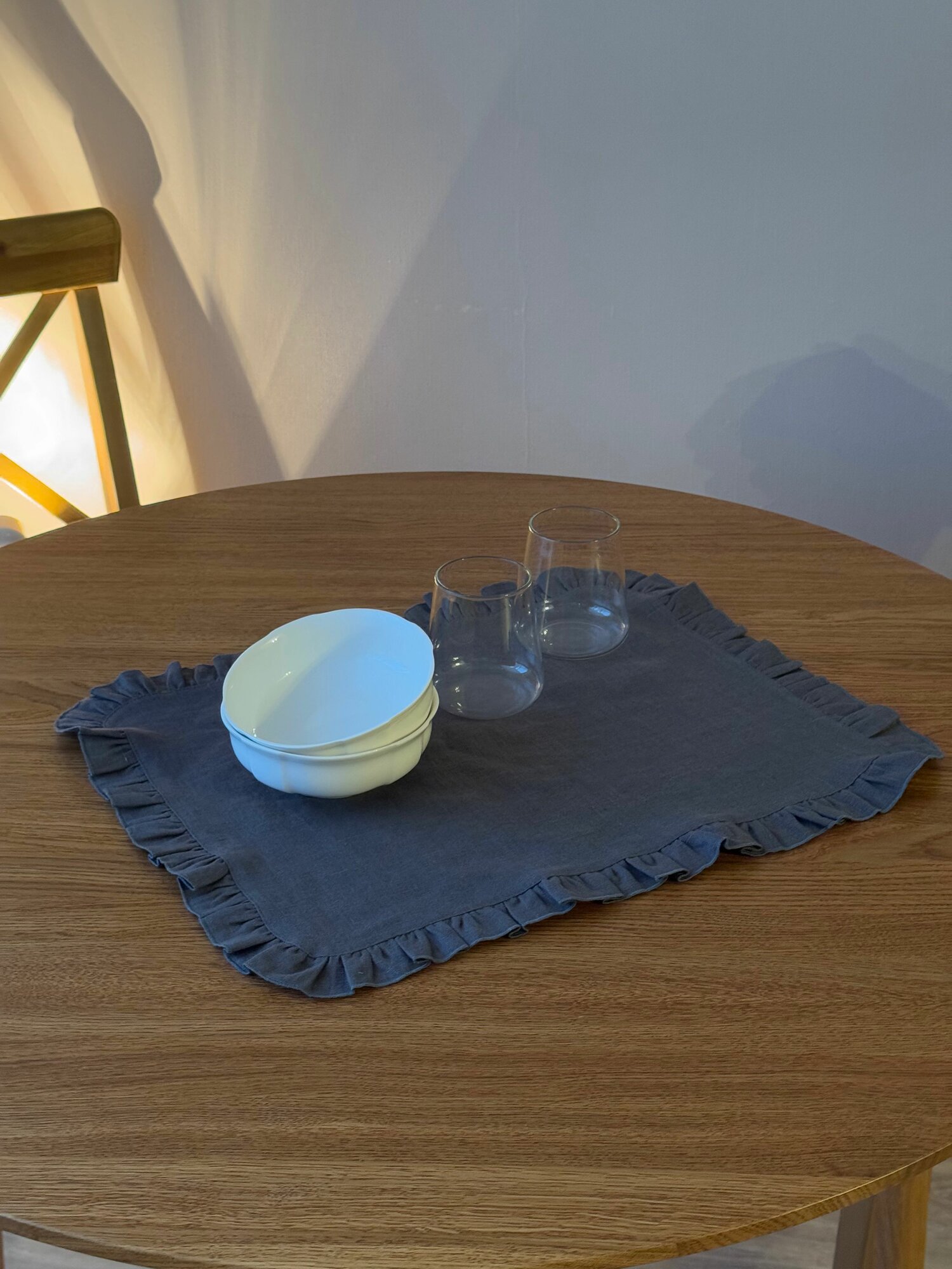 Сервировочная салфетка LenJuLen "Рюши", лен, 35 см x 35 см, серая