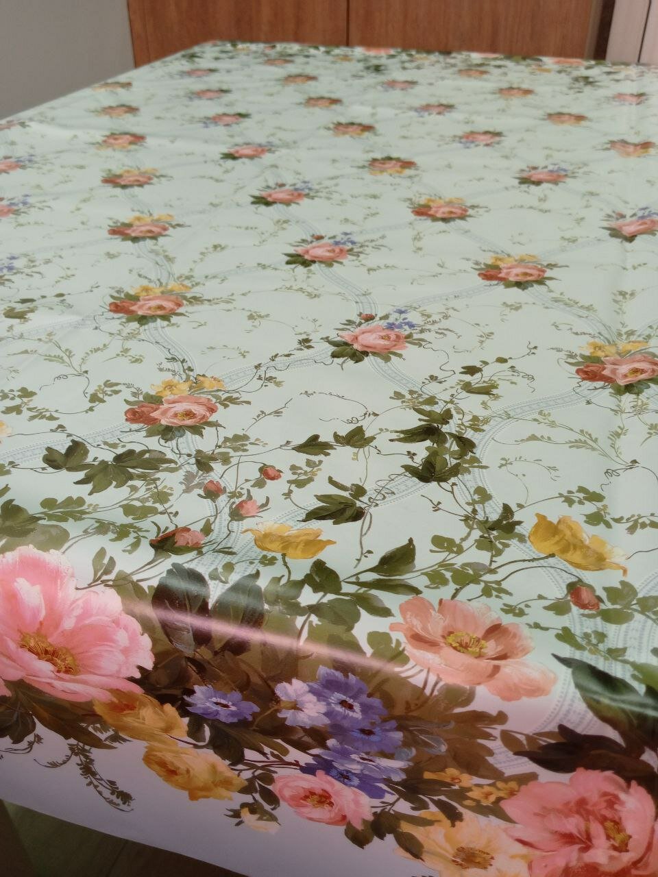 Клеенка на стол, плотная с рисунком цветы 180х140 см