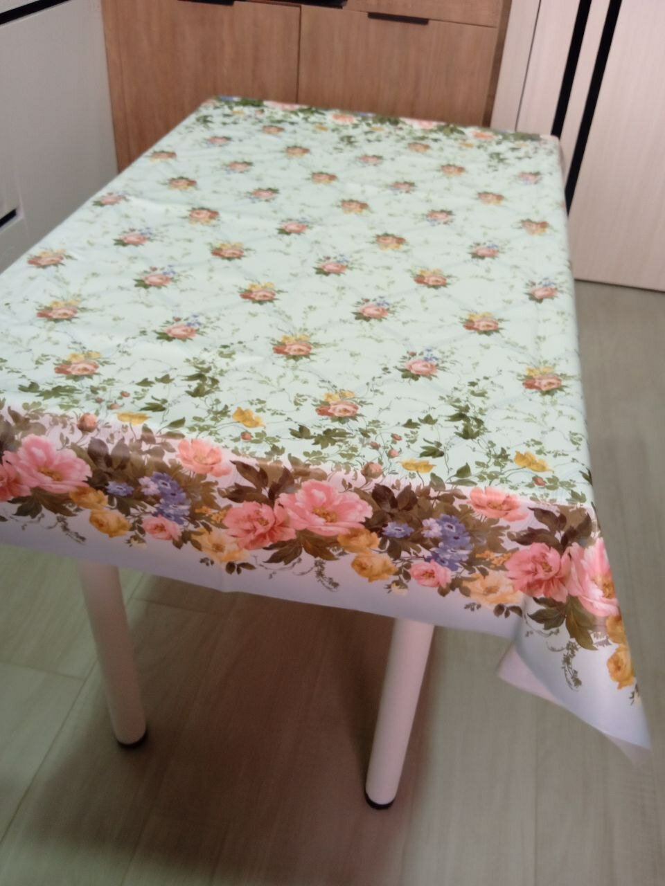 Клеенка плотная на стол с рисунком розовые цветы 140х140