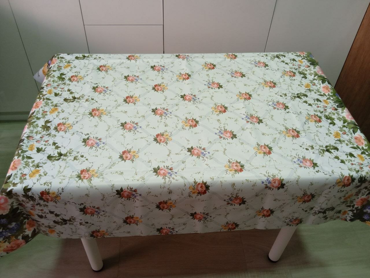 Клеенка на стол, плотная с рисунком цветы 140х140 см