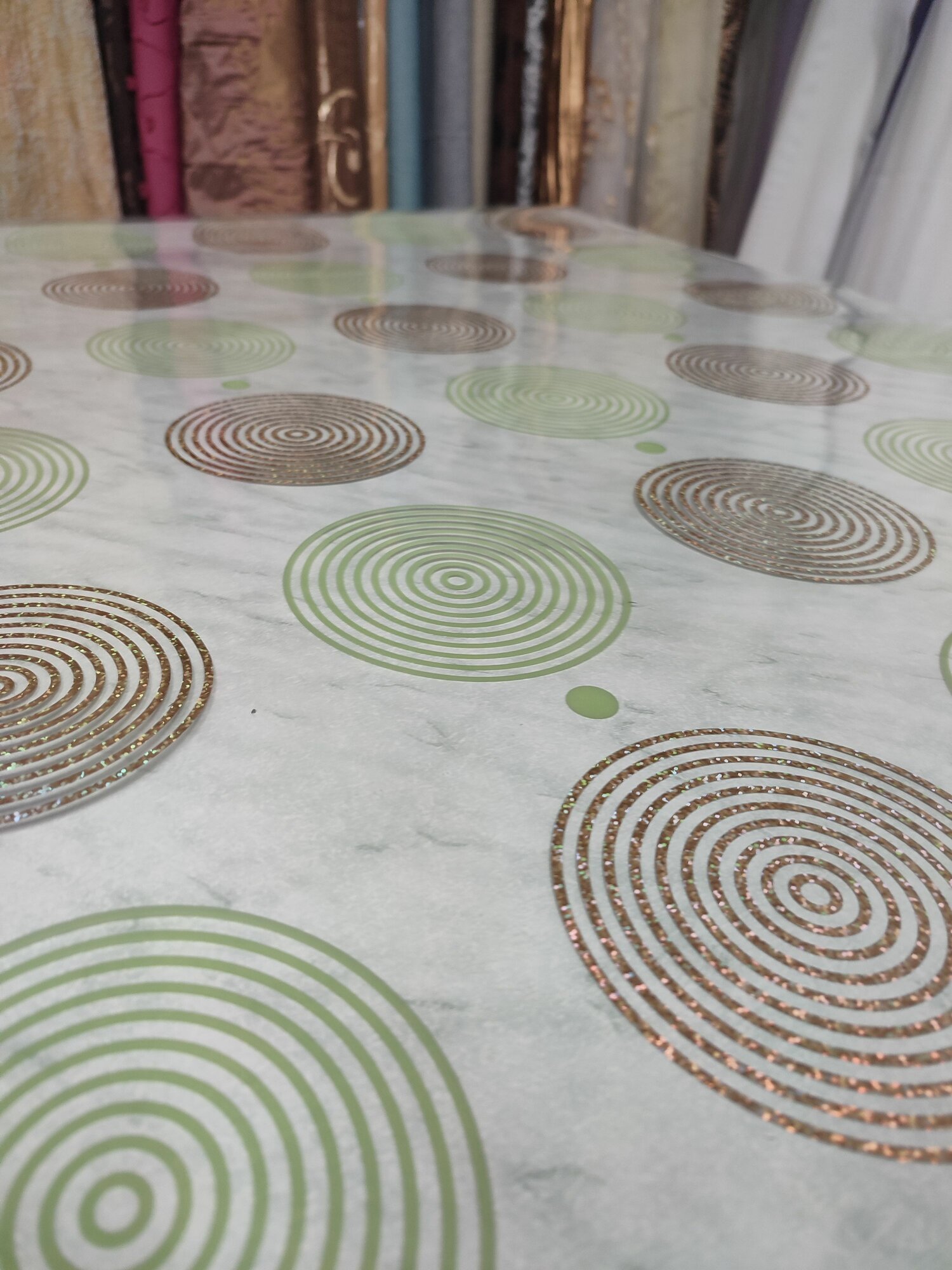 СохранитьСиликоновая скатерть на стол 70х80 гибкое стекло золотистые зеленые круги интересное: