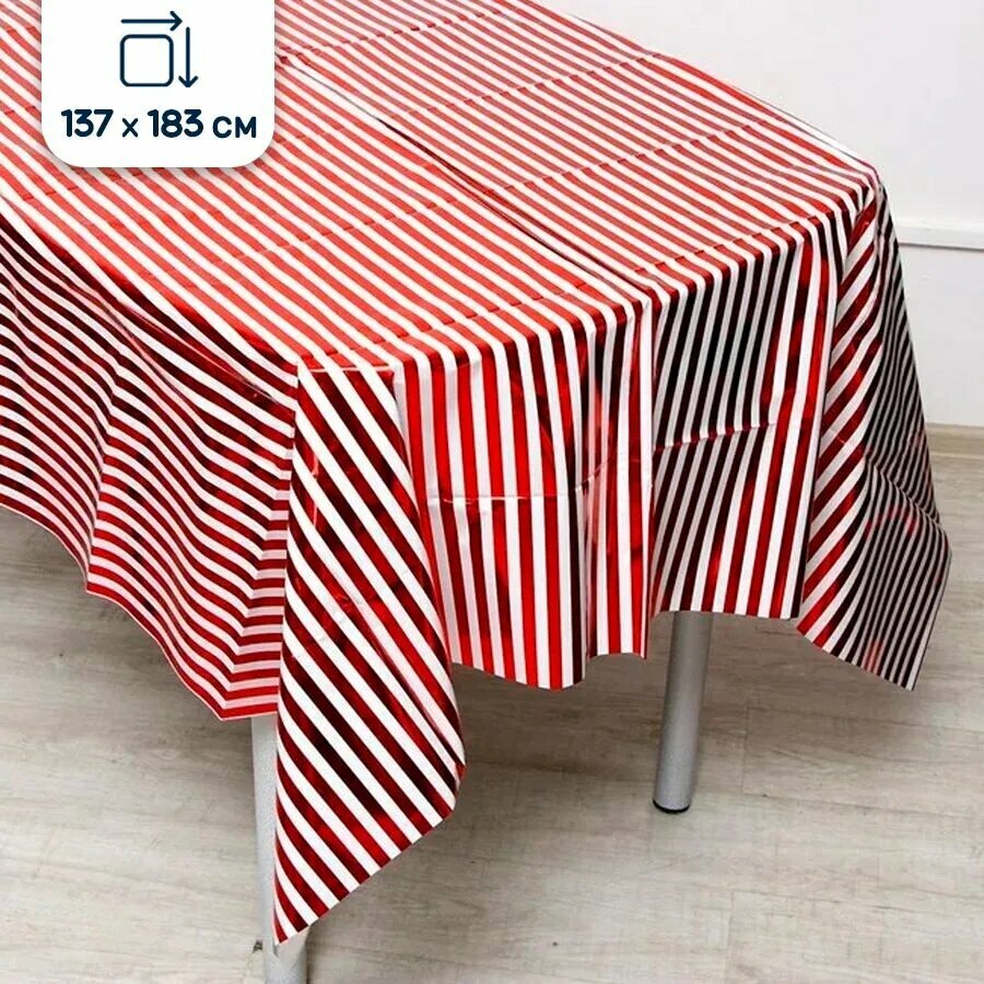 Купить Скатерть одноразовая праздничная Полосы, красная/белая, 137х183 см