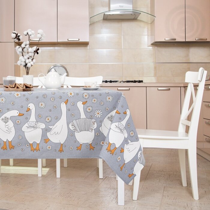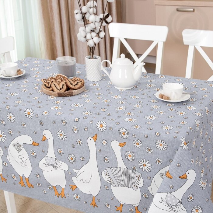 Скатерть столовая АртПостель, «Ромашки» из рогожки 120*145см, Гуси-обнимуси