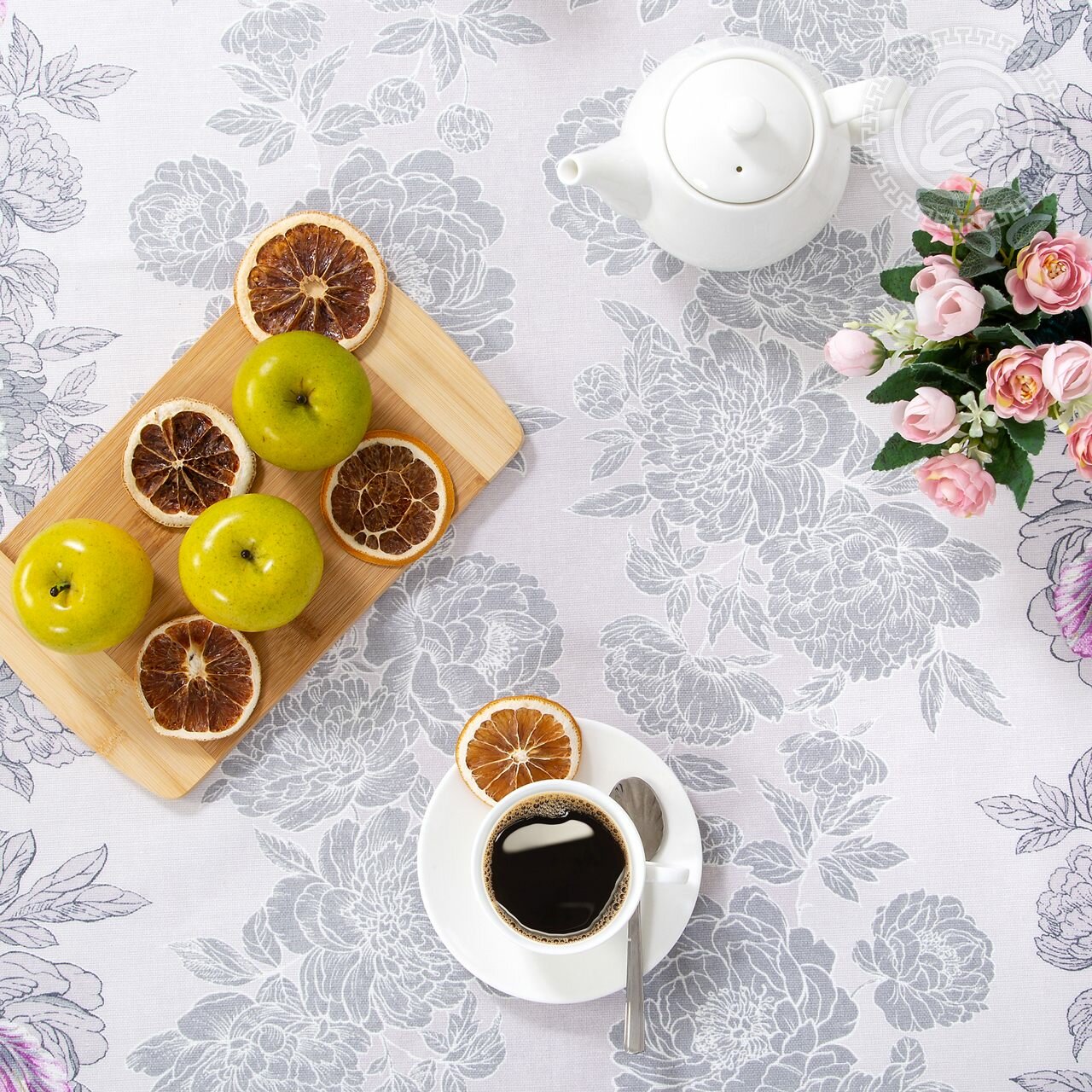 Скатерть столовая АртПостель, «Шантильи» из рогожки 120*145см, цветы, серый