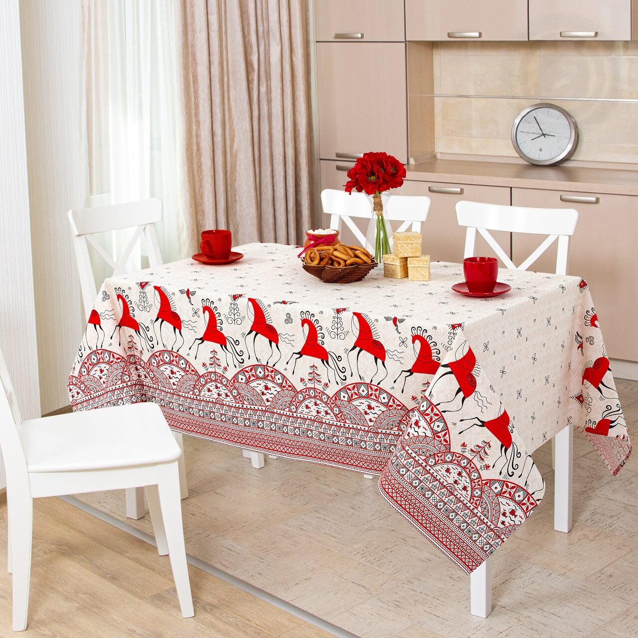 Скатерть столовая АртПостель, «Шантильи» из рогожки 150*145см, 8 марта, в подарок