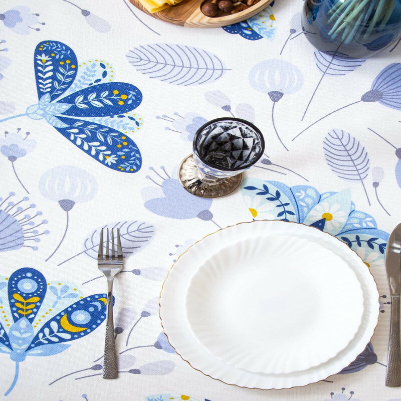 Скатерть столовая АртПостель, «Парма» из рогожки 120*145см, синяя, узоры