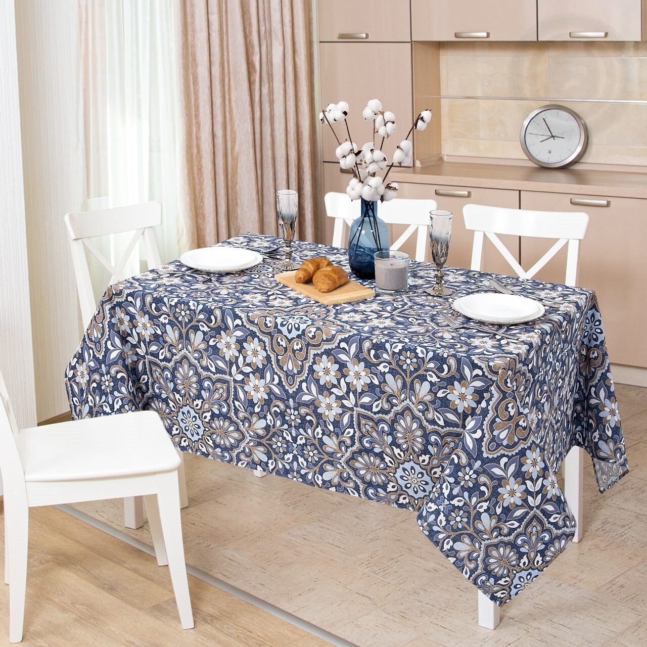 Скатерть столовая АртПостель, «Парма» из рогожки 120*145см, синяя, узоры