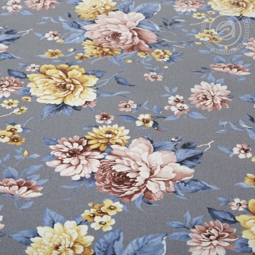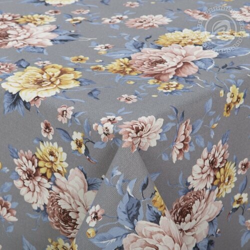 Скатерть столовая АртПостель, «Шантильи» из рогожки 120*145см, цветы, серый