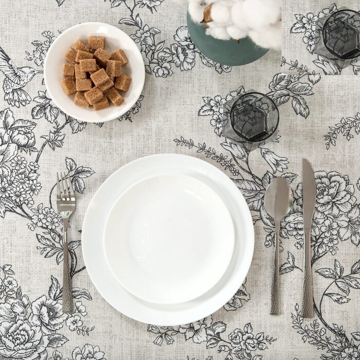 Скатерть столовая АртПостель, «Шантильи» из рогожки 120*145см, цветы, серый