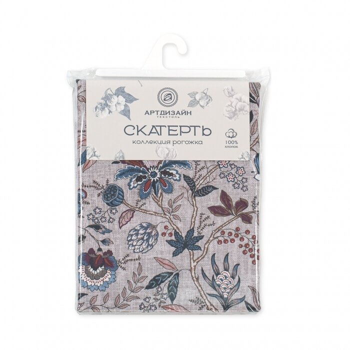 Скатерть столовая АртПостель, «Талавера» из рогожки 120*145см, серая, растительный орнамент
