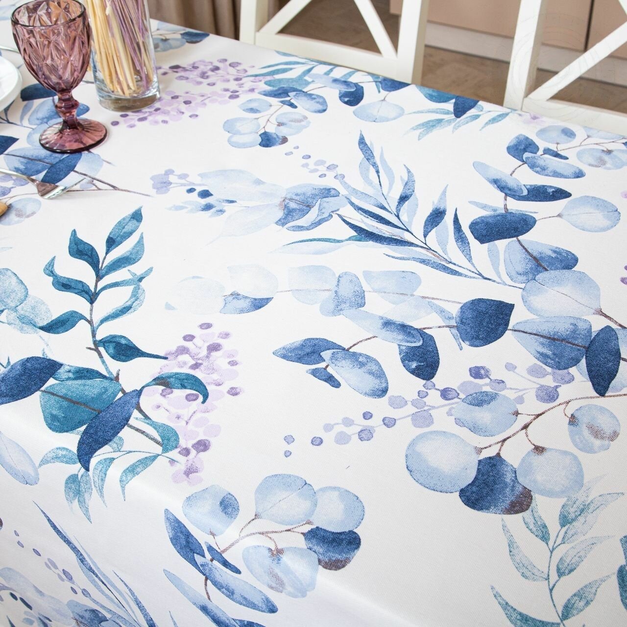 Скатерть столовая АртПостель, «Парма» из рогожки 120*145см, синяя, узоры