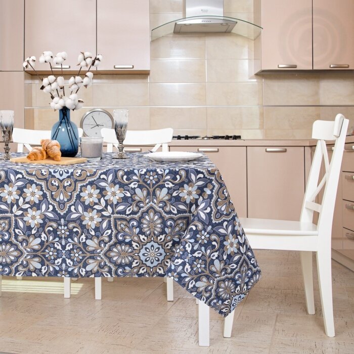 Скатерть столовая АртПостель, «Парма» из рогожки 120*145см, синяя, узоры