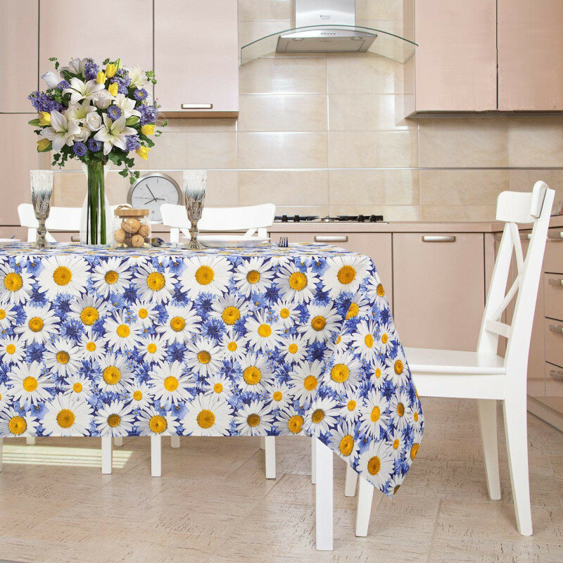 Скатерть столовая АртПостель, «Ромашки» из рогожки 120*145см, Гуси-обнимуси