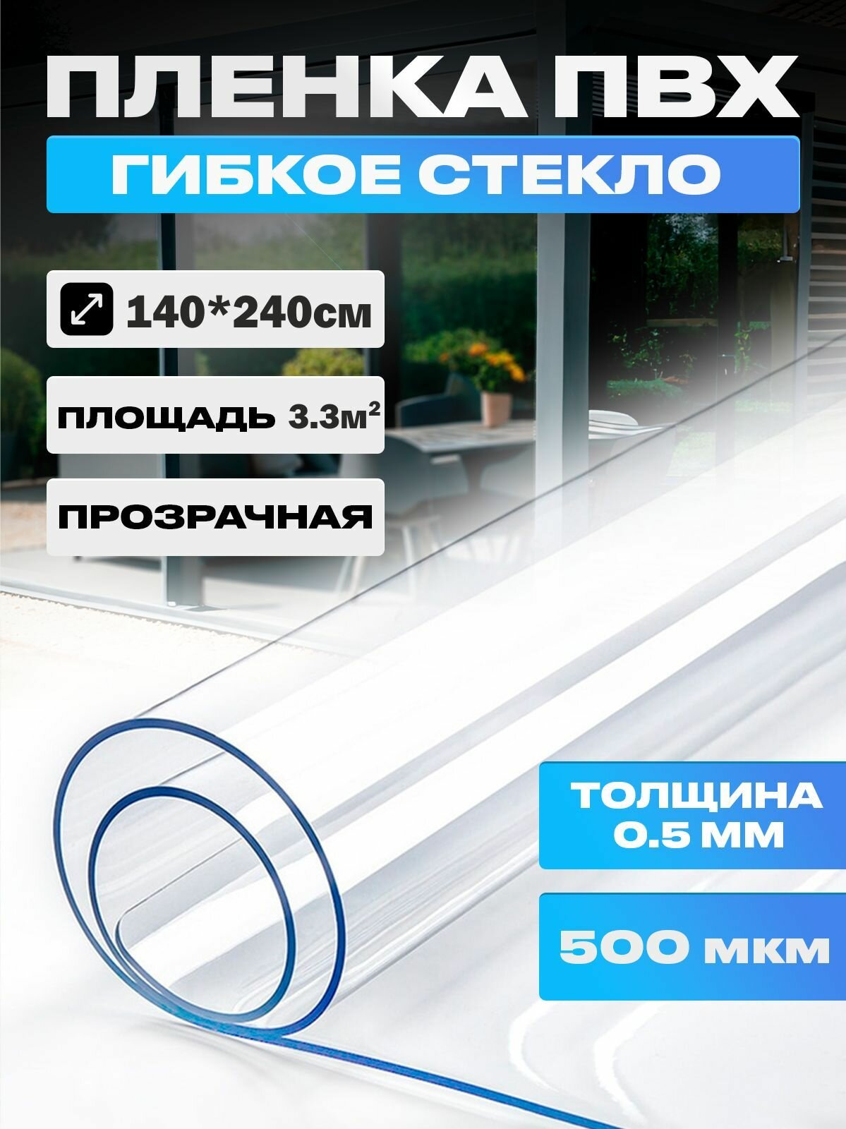 Пленка ПВХ, мягкое окно, прозрачное гибкое стекло на отрез, толщина 0,5 мм, размер 140*140 см