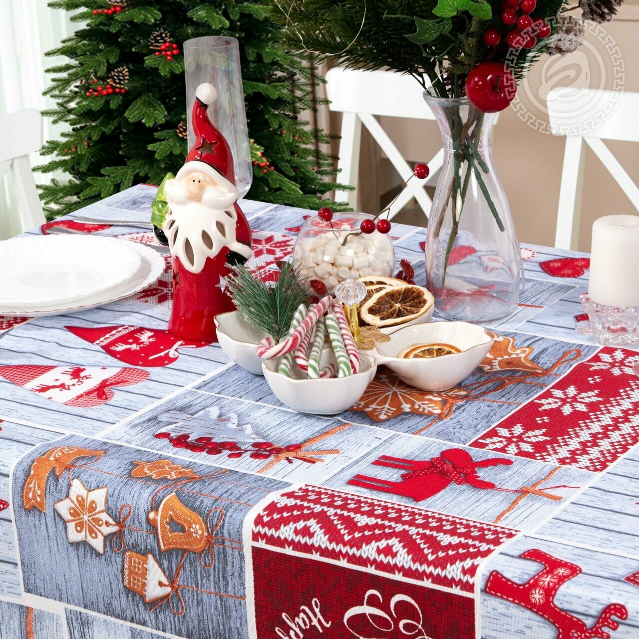 Скатерть столовая АртПостель, «Сочельник СБ. 150*120» из рогожки 120*145см, новый год 2024, в подарок