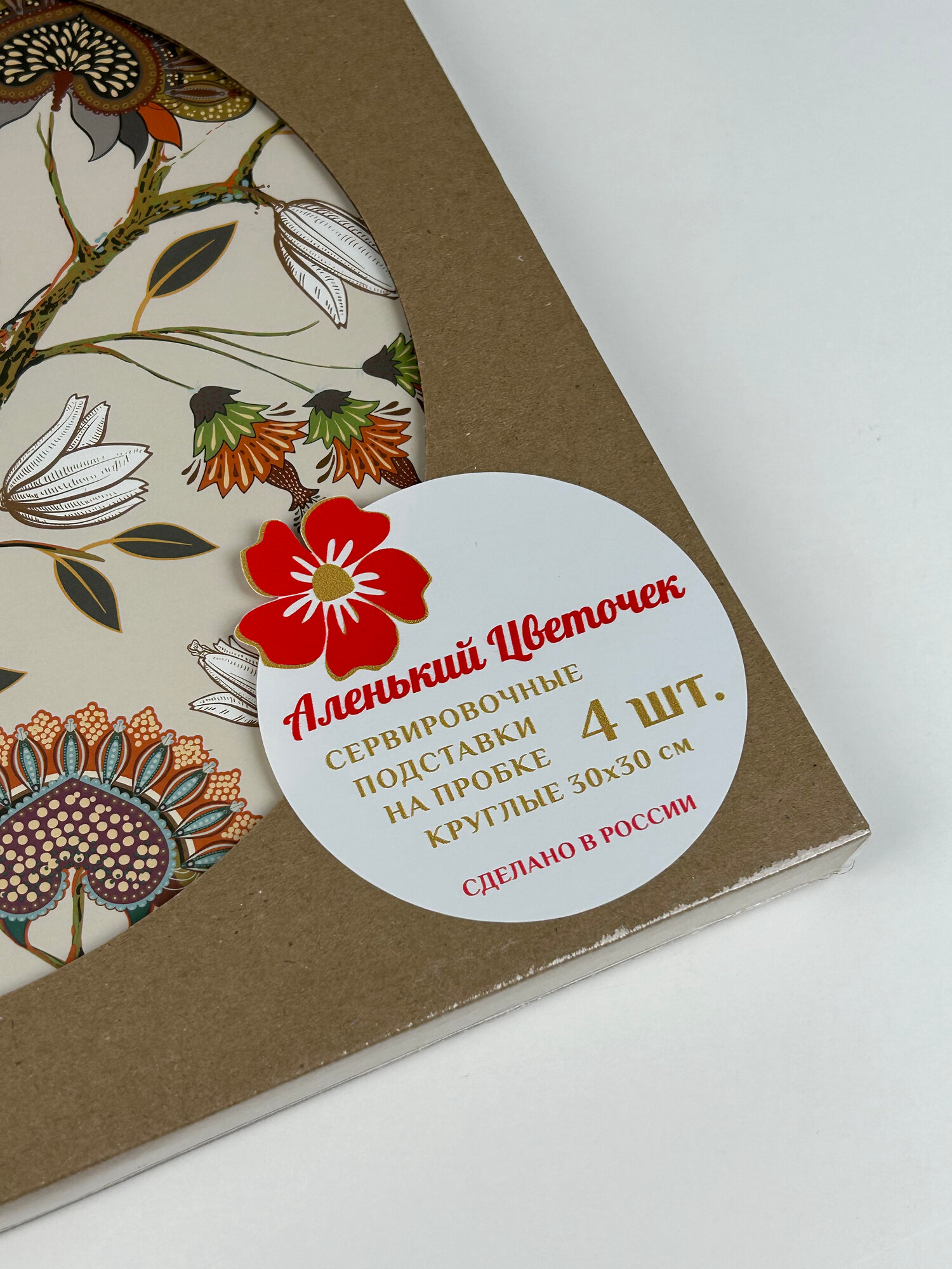 Купить Салфетки на стол сервировочные "Цветущий сад", пробка, 30x30 см, 4 штуки