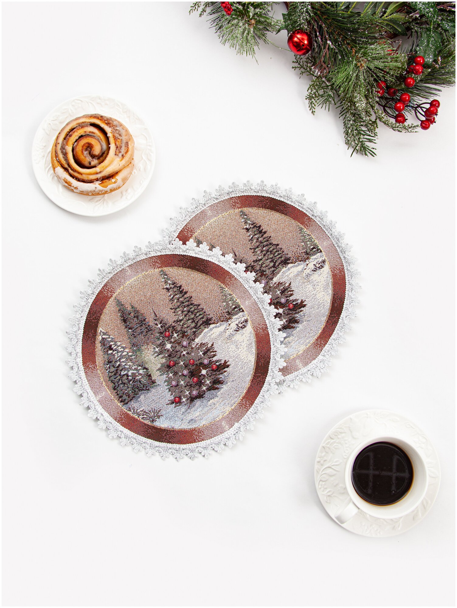 Комплект салфеток Le Gobelin Новогодний вечер бежевый фон 2шт диаметр 24 см