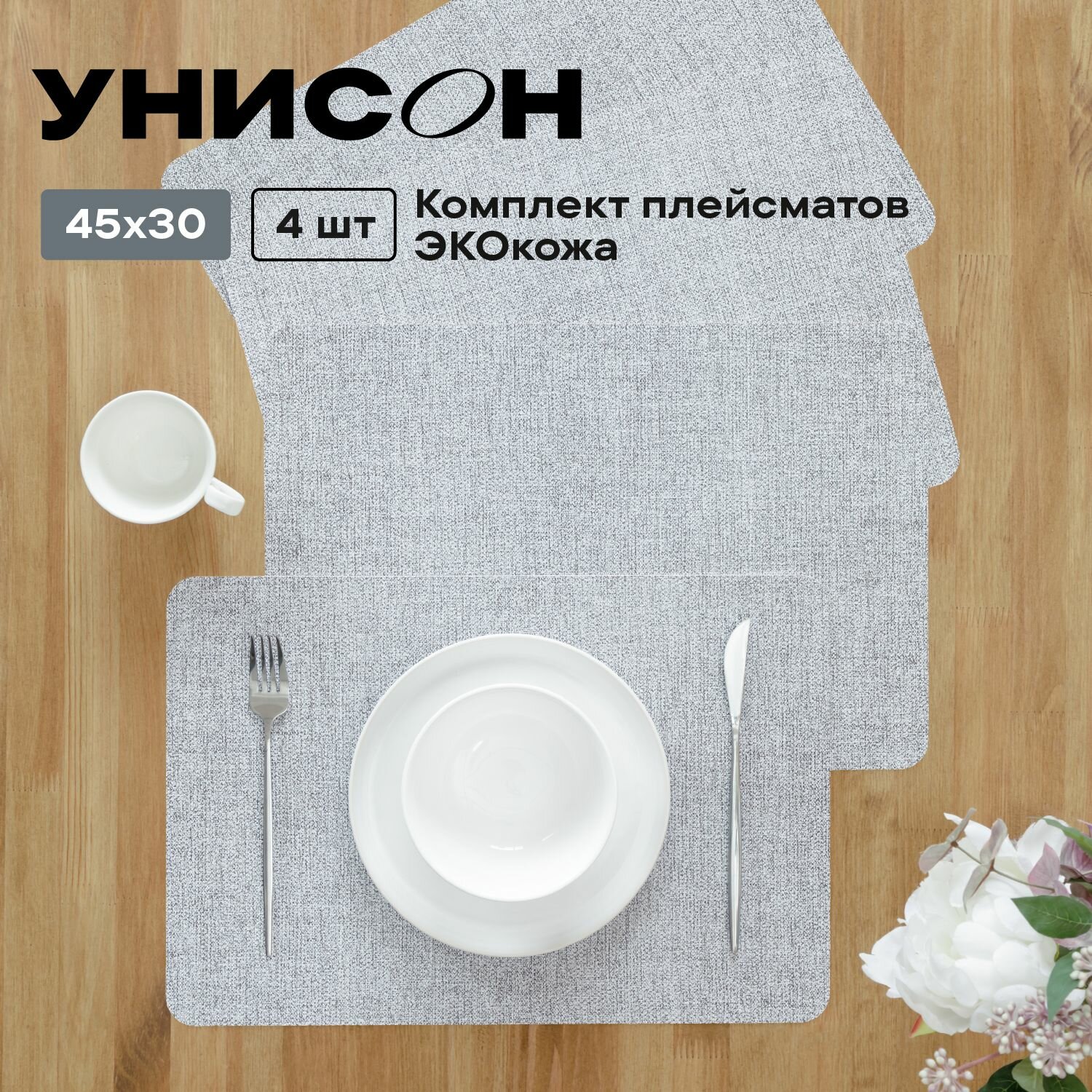Комплект сервировочных салфеток 45х30 (4 шт.) "Унисон" Leather light grey интересное: