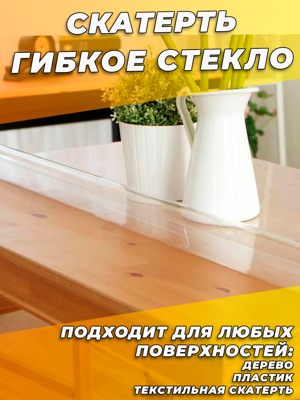 Гибкое стекло Soft Glass, ПВХ, 140 см x 110 см, антискользящее, прозрачное, бесцветное