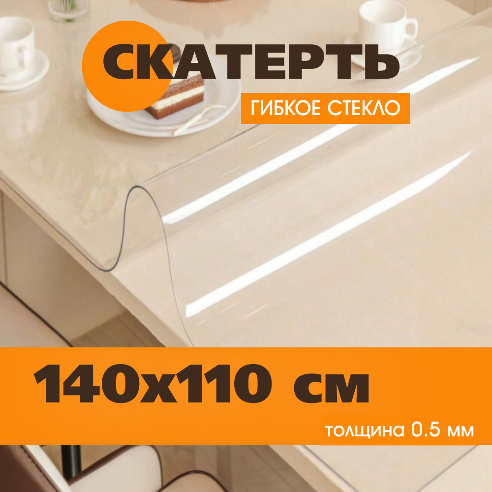 Скатерть прозрачная 140 x 190 см, толщина 0,2 мм (200 мк) / мягкое-гибкое стекло ПВХ