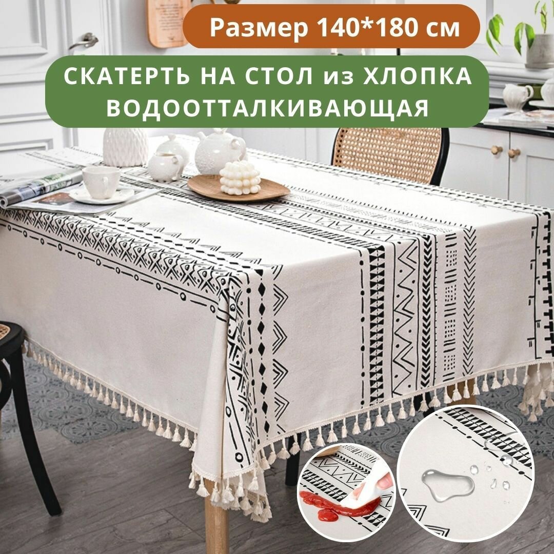Скатерть на стол хлопок водоотталкивающая на новый год, не клеенка, 140*180 см, Сканди Бохо интересное: